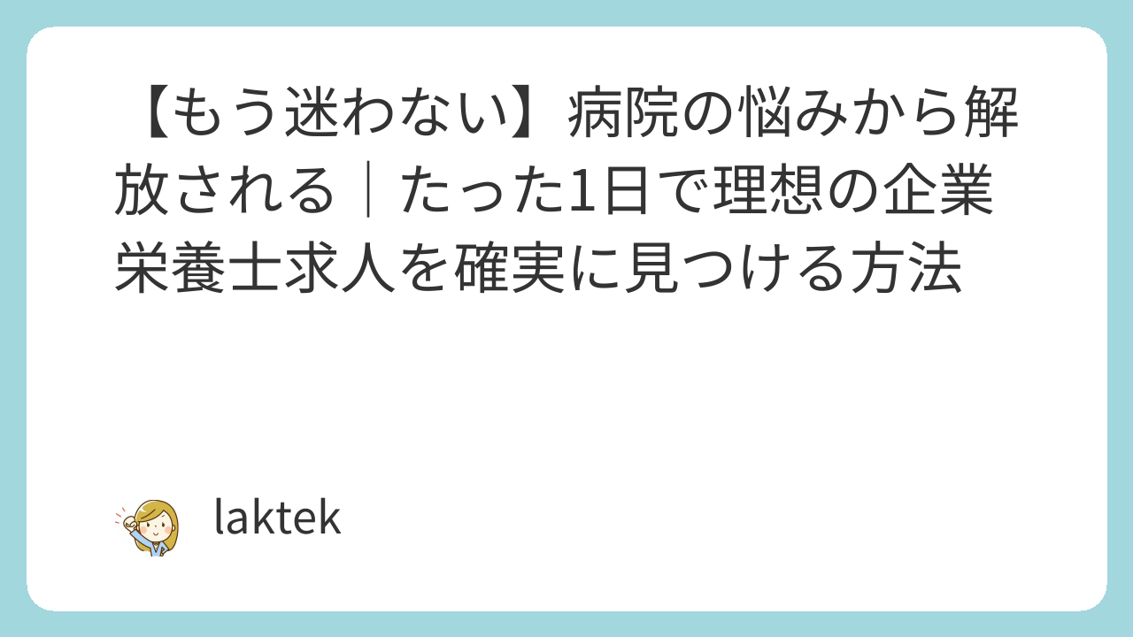 しかし、企業栄養士という道は、あなたの専門性を最大限に活かし、理想のワークライフバランスと収入を手にいれる「確実」な方法だと断言します。