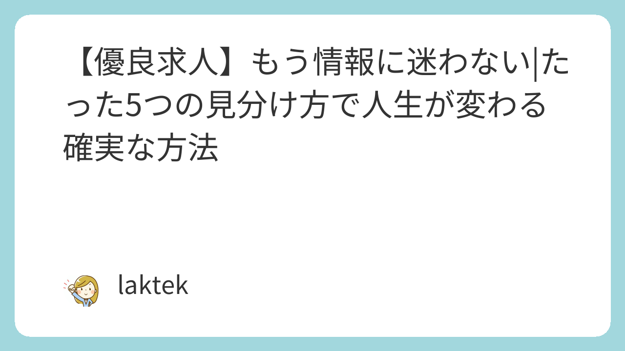 - 「優良求人」を見分けるための、たった5つの確実なチェックポイント