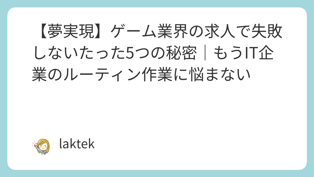 あなたの人生、このままで良いのですか?ゲーム業界の「たった5つの秘密」を知るだけ