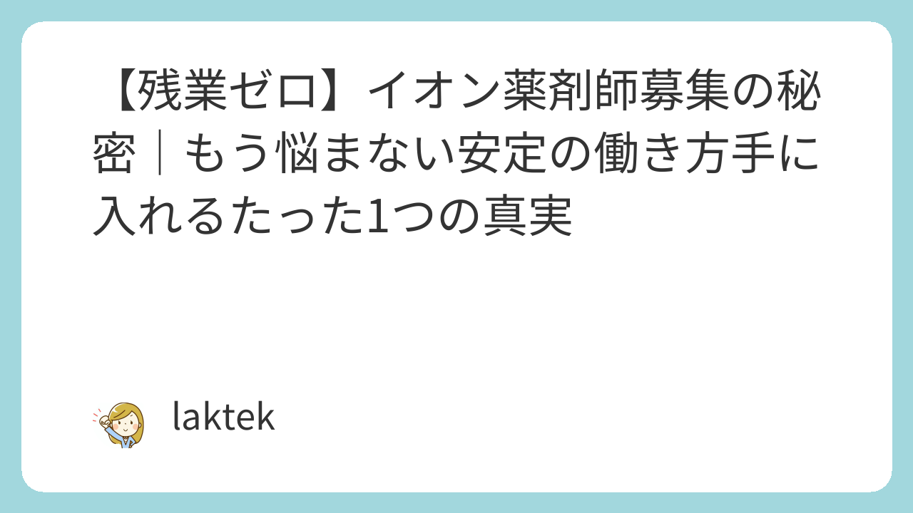 この記事では、私が実際に調べ、そして多くの人が理想の働き方を手に入れたイオン薬剤師の真実を明らかにしました。
