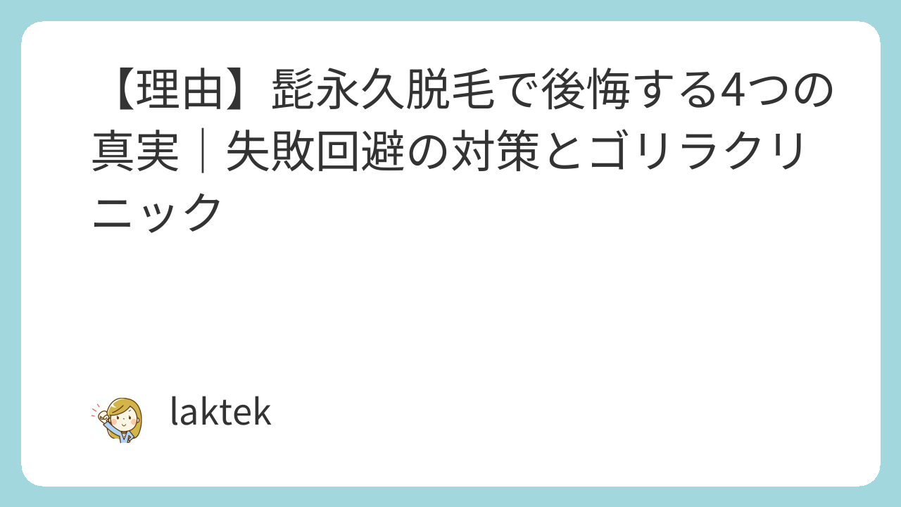 この記事では、多くの方が抱える「髭永久脱毛後悔」の具体的な4つの理由と、失敗を回避するための5つの対策、そして私が実際に利用して満足しているゴリラクリニックでの理想の脱毛実現について、詳しく解説しています。